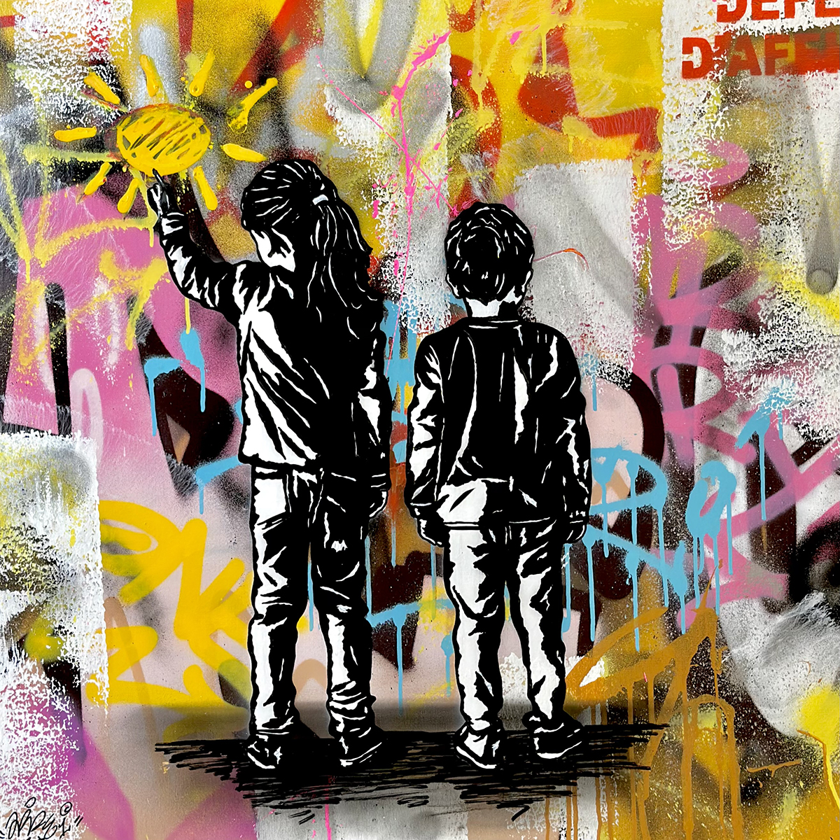 Dessine-moi le soleil Technique mixte sur toile 80x80cm