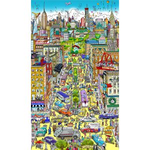 Les œuvres de Charles Fazzino sont composées de 3 sérigraphies découpées manuellement au cutter. Chaque morceau est ensuite recollé à la main. En jouant sur la hauteur des points de colle et en décentrant légèrement les différentes pièces, l’artiste accentue l’effet 3D. Le tableau est ensuite décoré de paillettes et de cristaux Swarovski avant d’être numéroté et signé à la main.