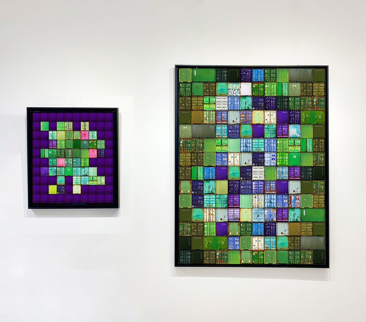 His fascination with containers is transformed into a visual symphony of colors, assemblages, and geometries.