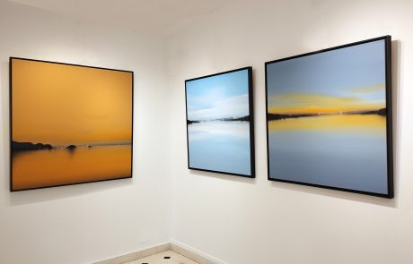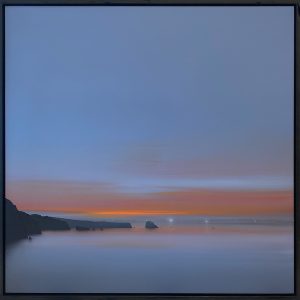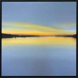 Sa peinture est un dialogue qui frôle l’abstraction si ce n’est un horizon toujours présent. Centrées sur une trainée de lumière vibrante et sur de larges bandes de couleurs contrastées, ses œuvres dégagent une atmosphère sereine qui invite au silence et à la contemplation
