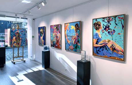Pour la rentrée, la galerie de Honfleur met l’accent sur le travail de Frédérique Tristant. Née en 1971 à Vannes, elle nous présente des œuvres colorées, délicates et poétiques qui mêlent papier, gouache et acrylique. Elle revisite le portrait féminin sous l’angle d’une enveloppe charnelle qui fait remonter les souvenirs à la surface de la peau. Les plis et les rides du papier pelure ancrent son travail dans le genre de la vanité et les motifs choisis lui permettent de passer d’une personne réelle photographiée (très souvent ses enfants) à un personnage fictif. En recréant des géographies imaginaires et nostalgiques de l’enfance, elle conte des histoires personnelles qui deviennent universelles.