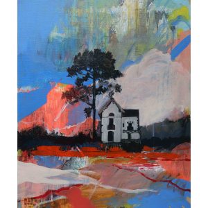 Portrait du garçon aux fleurs blanches dans la maison jaune